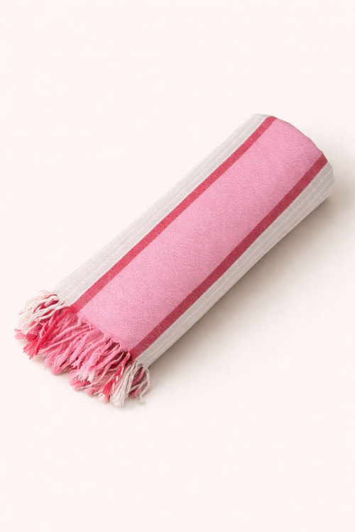 100% cotton • Dual-sided design - Turkish weave and terry • Generous size 175cm x 100cm • Pre-washed for extra softness • Available in Glacial - ice blue, electric blue, and natural • Heatwave - red, pink, and natural with subtle woven stripes